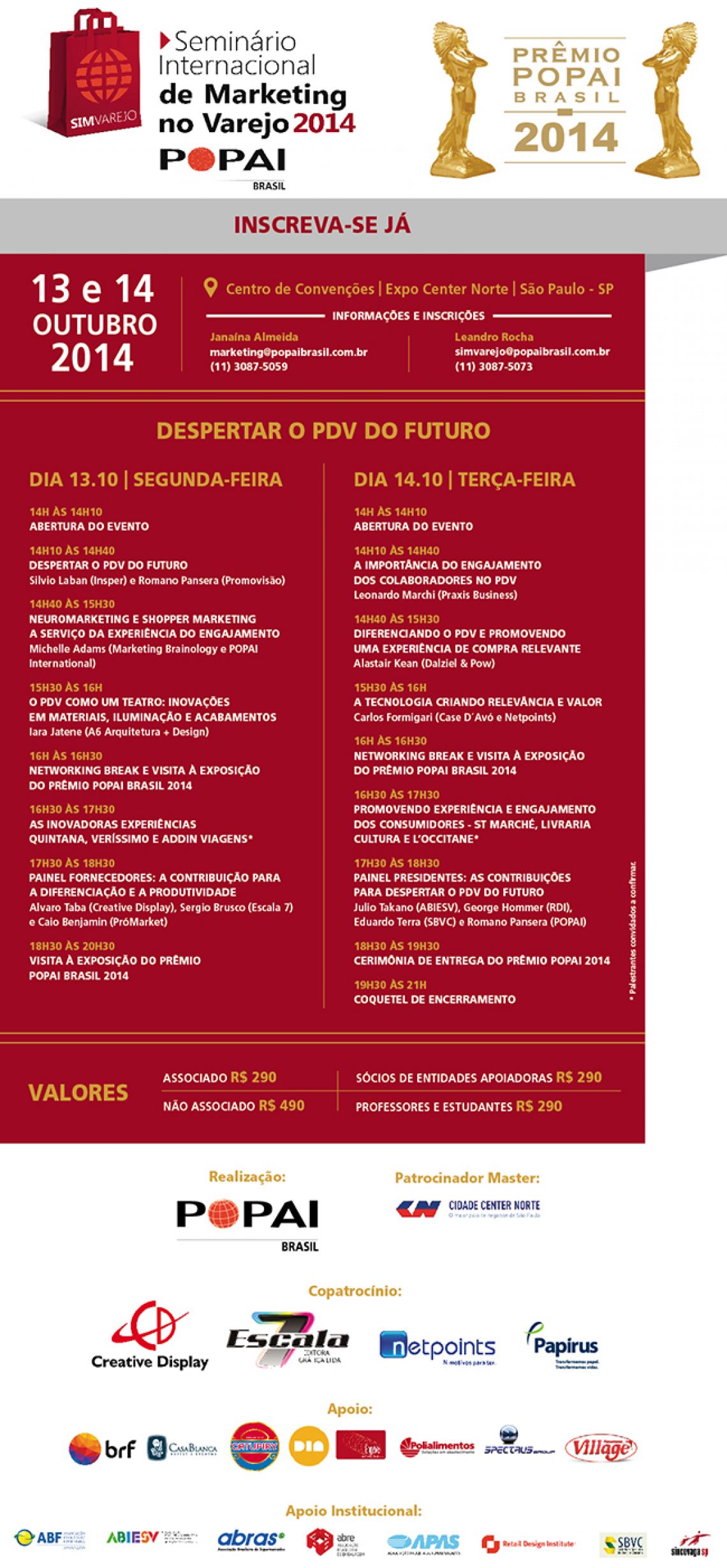 São Paulo, 08 de outubro de 2014 – O Prêmio POPAI Brasil está em sua 15ª edição e a POPAI Brasil, associação internacional que é voltada para a valorização e comunicação no ponto de venda, promove nestes dias 13 e 14 de outubro, mais um evento tradicional da instituição. Esta é a maior premiação de merchandising para o ponto de venda brasileiro. A Creative Display participará da premiação com treze peças.