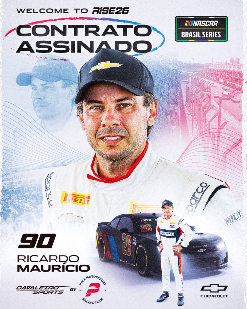 A NASCAR Brasil ganha mais um nome de peso para a temporada 2026. O tricampeão da Stock Car, Ricardo Maurício (#90), está confirmado no grid em um projeto que marca o início da parceria entre as equipes formou a Cavaleiro Sports by Pole Motorsport, duas estruturas estreantes na categoria que unem forças em busca de desenvolvimento conjunto e novas oportunidades no automobilismo nacional.