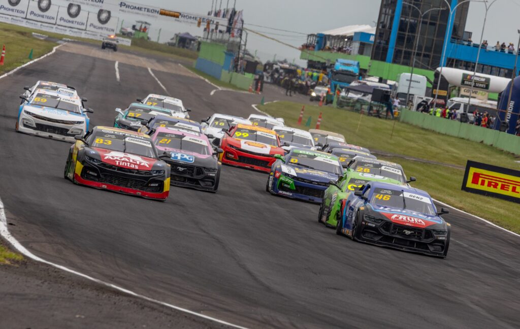 Vitor Genz largou na frente depois do resultado conquistado na corrida classificatória Sprint Race de sábado, mas segurar a ponta virou trabalho hercúleo. Gabriel Casagrande (Chevrolet Camaro #83/AMattheis Vogel), Thiago Camilo (Ford Mustang #21, Full Time), Nicolas Costa (Chevrolet Camaro #69, AMattheis Vogel), Arthur Gama (Chevrolet Camaro #9, Cavaleiro Sports) e Cacá Bueno (Chevrolet Camaro #0, Team RC) transformaram cada volta em disputa aberta. Não teve respiro. A liderança trocou de dono, mudou de endereço e ficou cercada por todos os lados.