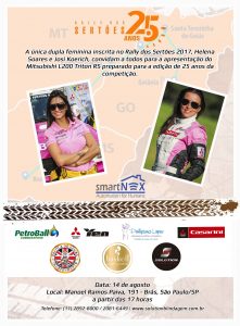 Cartões e Convites Convite : Apresentação do carro de Helena Soares e Josi Koerich para o Rally dos Sertões 10 de agosto de 2017