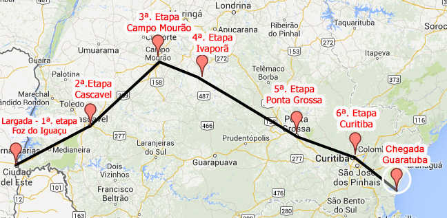 9h – Largada: Posto o Cupim 2 Rod. BR 376 , Km 640, sentido Joinville – Curitiba/PR